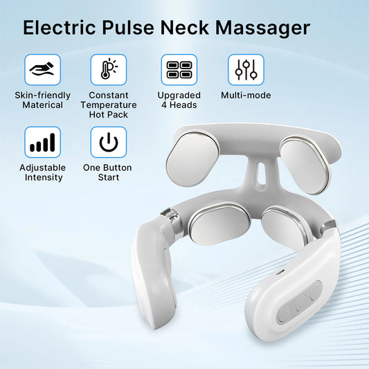 Cordless Neck Massager with Heat | 16 Intensity EMS, Deep Muscle Relief, Hands-Free Design