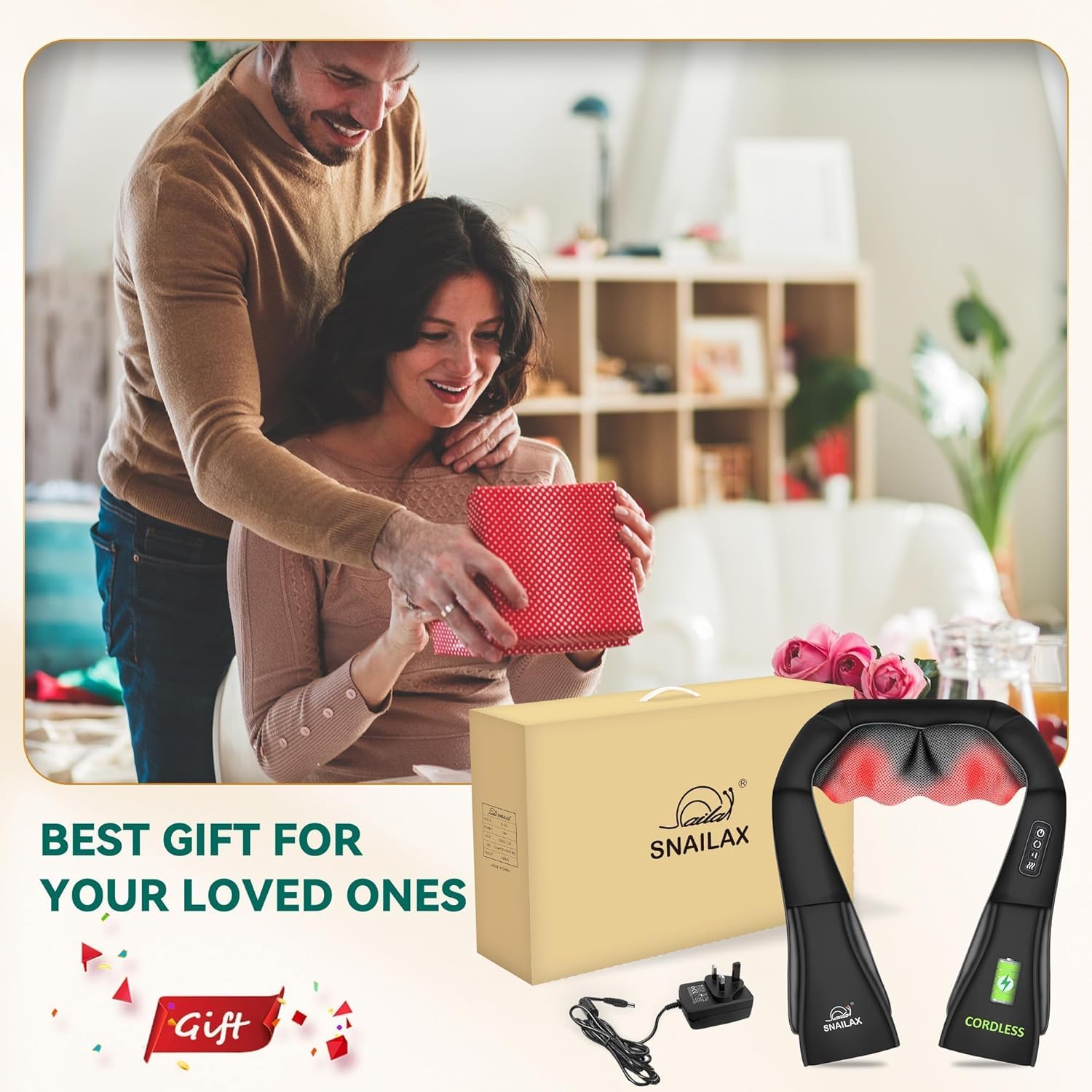 Relieve muscle tension fast with this cordless shiatsu neck and shoulder massager. Designed with 8 deep-kneading nodes and soothing heat, it helps relax tight muscles, improve circulation, and reduce daily pain. The wireless design lets you enjoy a strong, professional-style massage anywhere—at home, work, or while traveling.