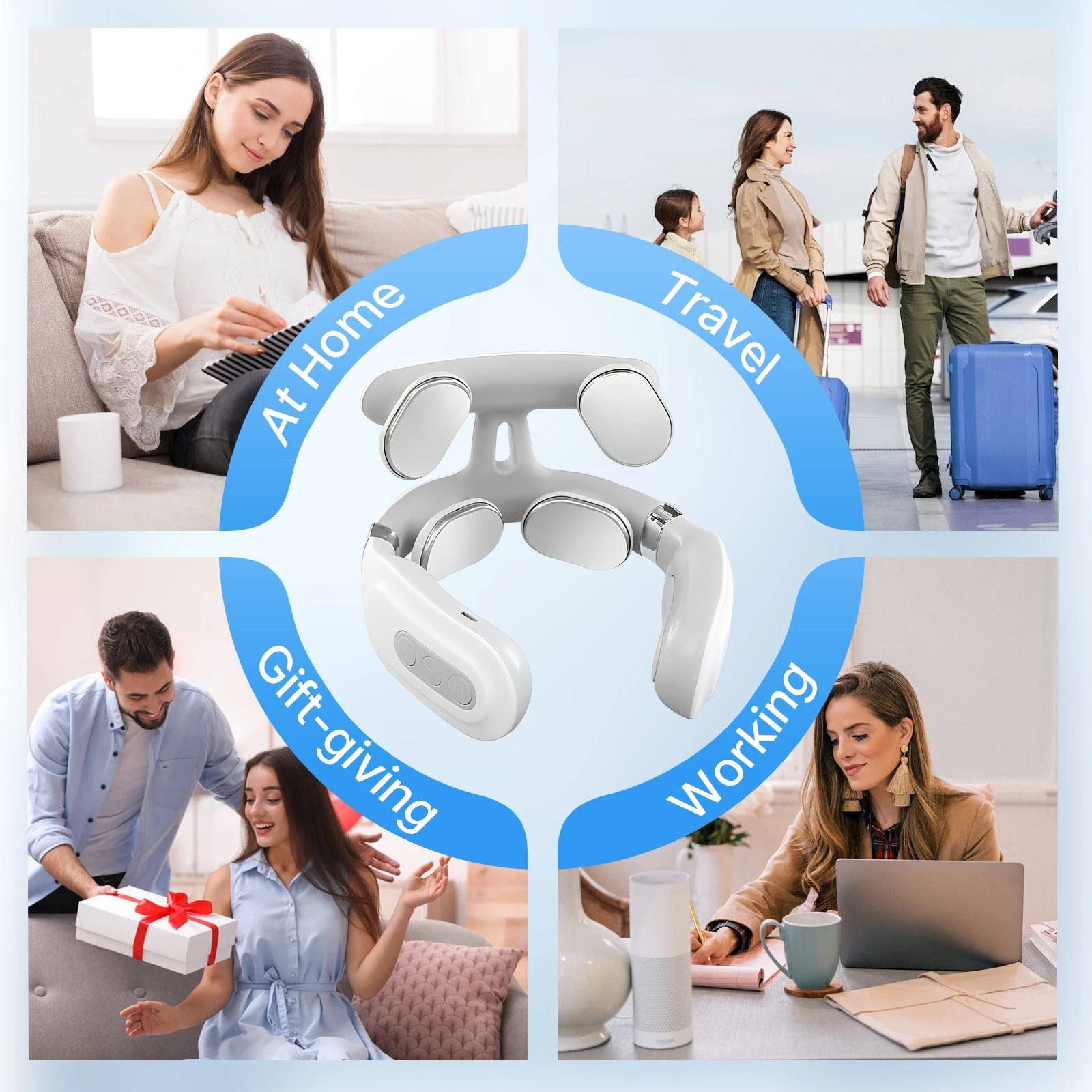 This neck massager helps loosen tight muscles, improve posture support, and reduce daily neck fatigue. It works quietly, fits comfortably, and shuts off automatically so you can use it safely every day at home, work, or while traveling.