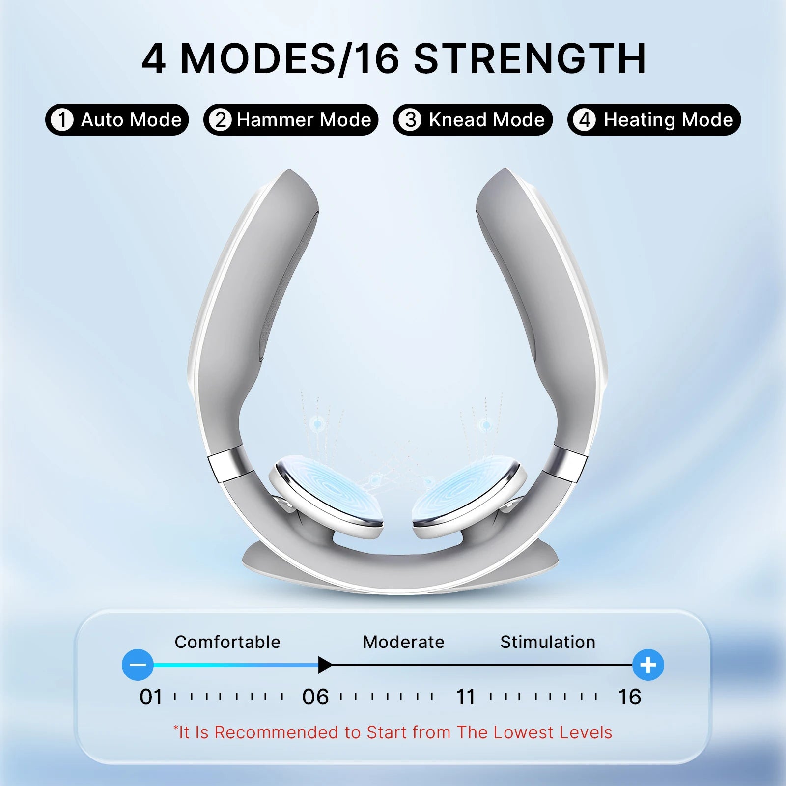 Choose light or strong massage with easy controls for quick, personalized sessions.